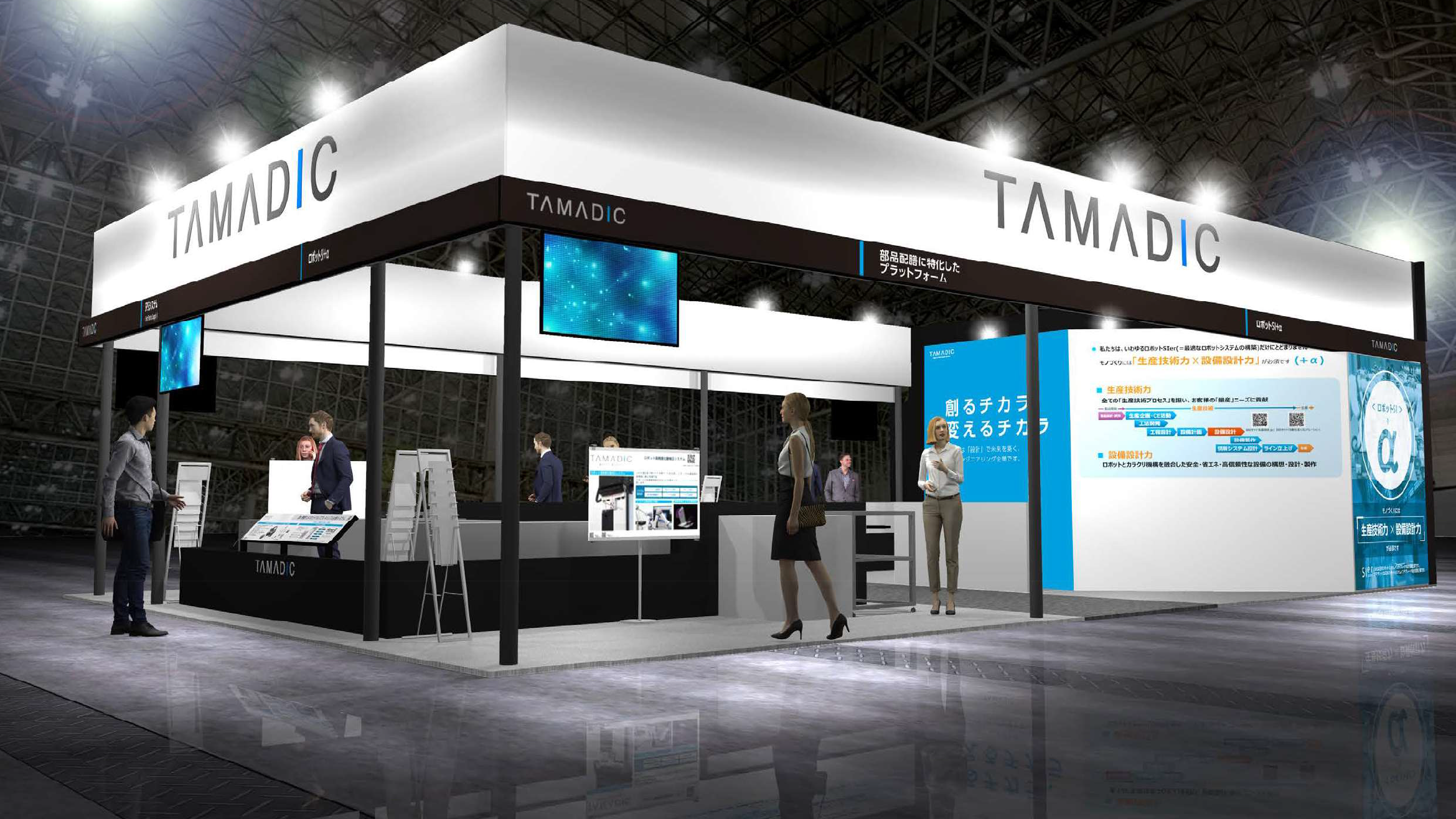 "ロボットSI+α"をテーマに生産現場の悩みを解決するためのヒントとなるソリューションを展示2025年10月29日(水)~10月31日(金) ポートメッセなごや(第3展示館) 株式会社タマディック(本社:東京都新宿区/愛知県名古屋市、英文社名:TAMADIC Co., Ltd.)は2025年10月29日(水)~10月31日(金)の期間に、ポートメッセなごや(第3展示館)にて開催される「FACTORY INNOVATION Week 2025 名古屋 ロボデックスロボット開発・活用展」に出展いたします(小間番号:N33-14)。弊社は、1959年の設立以来、自動車、航空・宇宙、FA・ロボット、エレクトロニクスをはじめとする様々な産業の国内トップメーカーとともに技術の開発・革新に取り組んでおります。同時に、これまで獲得した知見や技術を活かした研究開発や保有技術の活用にも注力しており、AGVや協働ロボットなどロボットを活用することで生産現場の悩みを解決するソリューション提案を行っております。同展では、"ロボットSI+α"をテーマに据え、生産現場の悩みを解決するためのヒントとなる展示物を出品いたします。今後ますますロボットの導入が進められていく生産現場において、ロボットを最大限活用するためのシステムを構築することは必要不可欠です。同時に、実際にロボットを導入するに当たり、前後工程や既存設備の活用など、様々なシチュエーションや現場ニーズなど多くの課題が発生します。そういった現場において、弊社が創業より培ってきた「生産技術力」「設備設計力」という強み(+α)を活かし、ロボット導入の課題を解決してきた事例を踏まえ、展示品を通してソリューションをご提案してまいります。タマディックは、今後も「総合エンジニアリング企業」として技術力を通じ、ものづくり大国・日本を支え、お客さまからの信頼にお応えする企業であることを目指し続けます。 開催概要 名称: FACTORY INNOVATION Week 2025 名古屋 ロボデックスロボット開発・活用展会場:ポートメッセなごや(第3展示館)開催期間:2025年10月29日(水)~10月31日(金)開場時間:10:00~17:00入場料金:無料(ただし、事前登録制)ホームページ:https://www.fiweek.jp/nagoya/ja-jp/about/robo.html 主な出展物 移動体ロボットシステム AMRとロボットの座標系および安全機能が統合されたシステムを実現。移動しながら作業が可能な新たな移動体ロボットシステムを提案いたします。 https://youtu.be/v-p8mXRV80Y 部品配膳に特化したプラットフォーム スカラ型産業用ロボットアームとカメラ位置補正による部品配膳に特化したプラットフォームを実現。様々な現場に適用可能な標準プラットフォームを提案いたします。 https://youtu.be/AGCwiUEAbIU 倣い制御によるフレキシブル生産システム 倣い制御を用いた位置補正技術によりローコストに6自由度の高精度位置補正を実施。上記技術を用いてフレキシブル生産システムを構築。工程組換えや品種切替を自動化し高効率な省人化を提案いたします。 https://youtu.be/pvodZkmu21Y 3D点群データを活用したロボット高精度位置補正技術 3次元測定器で得られた点群データを活用し、ロボットの位置姿勢を高精度に補正制御可能。ロボットの高精度制御が求められる案件に対し、SIerとして技術提案いたします。 https://youtu.be/A2jLBZZ9JXE 員数カウントシステム 自然光や照明などの外乱光がある環境下においてもカウントできる画像処理ソフトウェアを搭載したカウントシステムを紹介。 https://youtu.be/LlU93VVskaE